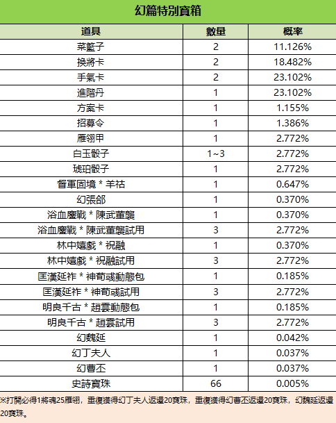10000元寶可購買50個幻篇特別寶箱(幻曹丕、幻丁夫人、幻魏延、幻張郃),限購10次