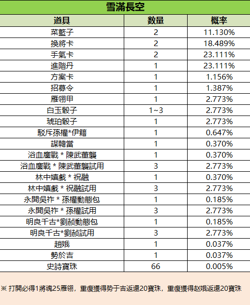 198/1950/3800/8888元寶可購買1個/10個/20個/50個雪滿長空(勢于吉、趙娥、謀韓當),限購999次