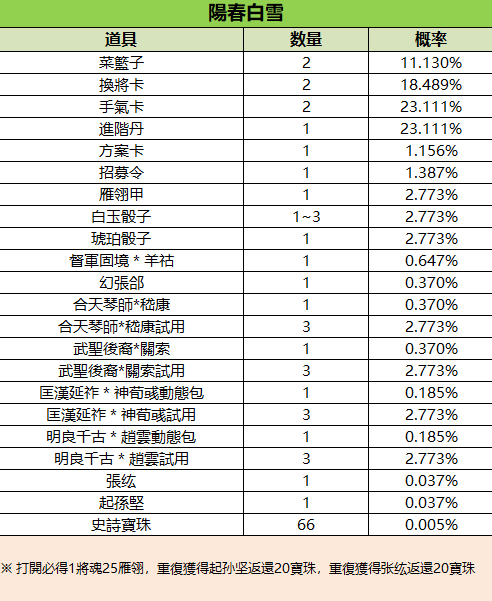 198/1950/3800/8888元寶可購買1個/10個/20個/50個陽春白雪(起孫堅、張纮、幻張郃),限購999次