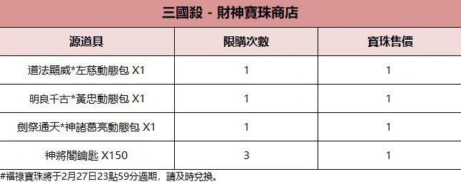 ※財神寶珠或太平百錢可在對應商店中兌換商品,商店兌換詳情見配圖。