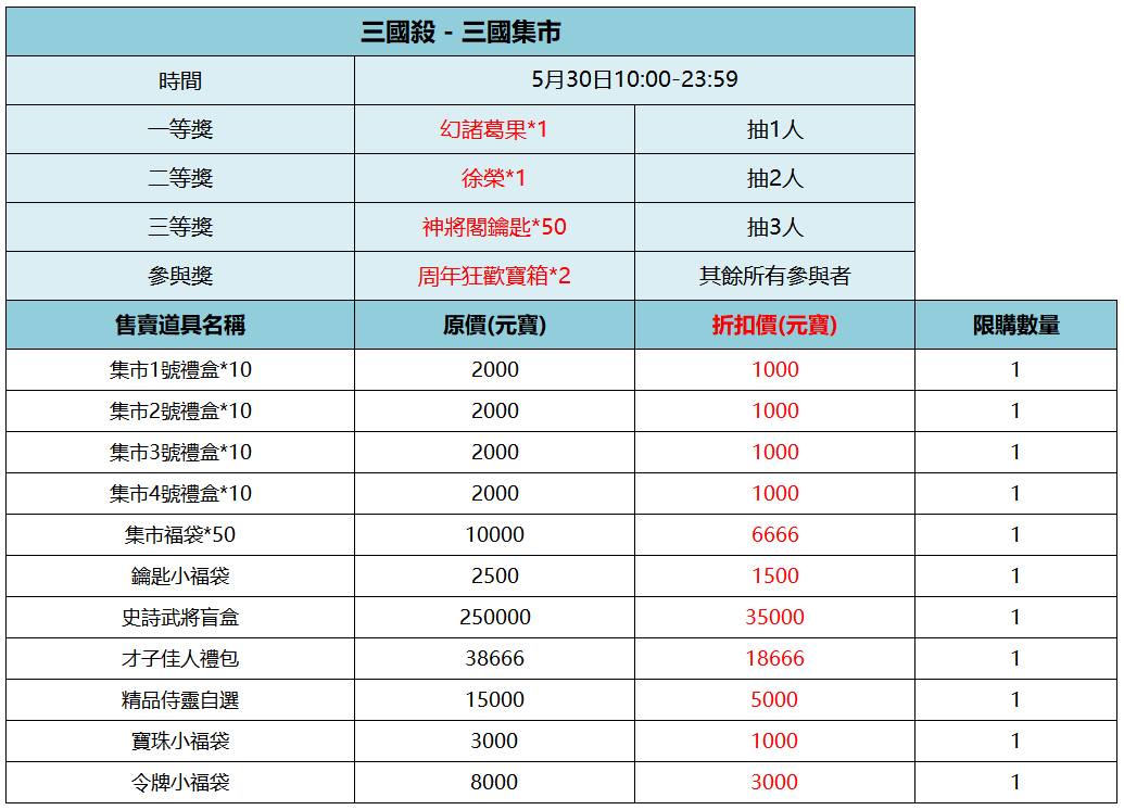 【#三國殺 #三國殺老友季2025 活動預告】三國集市 即將開始📣📣📣 活動時間 :5月30日 - 6月6日 每日上午10:00開售 活動規則 : 1️⃣ 活動期間集市商品每日更新,且在上午10:00開售。 2️⃣【每日大獎】將在當日所有購買了商品的主公當中抽出(無論購買數量多少,中獎概率均等),且在次日00:00-09:59公示中獎結果。 3️⃣ 此外主公每購買一份商品,還將隨機獲得一份小獎品(史詩寶珠碎片or歡樂豆福袋or手氣卡or換將卡or菜籃子),即時開獎隨商品發放。 活動入口:周活動>>三國集市