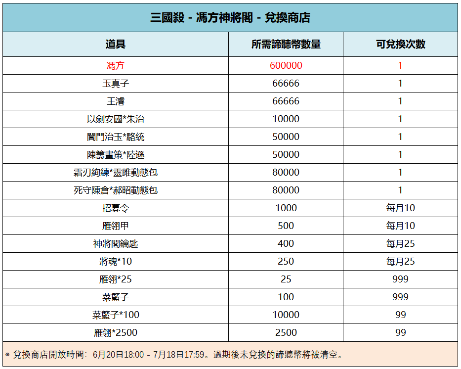 8000元寶可購買神將閣鑰匙50個(每人限購20次)