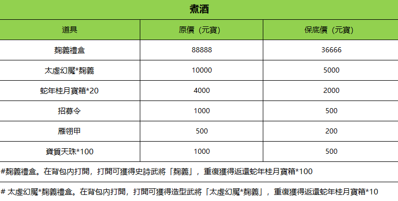 1.每邀請1個玩家可獲得一定的煮酒值,煮酒值累計達到一定數量後,可購買商品;