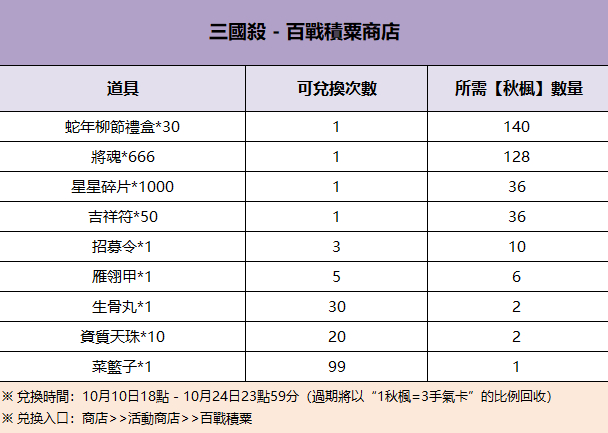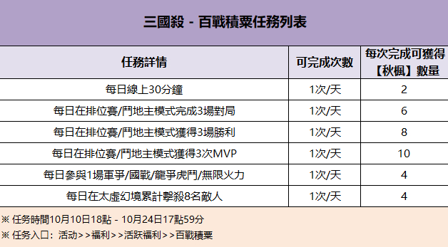 活動介紹:做活躍任務得【秋楓】,可用於兌換蛇年柳節禮盒、將魂、星星碎片等游戲獎勵~
