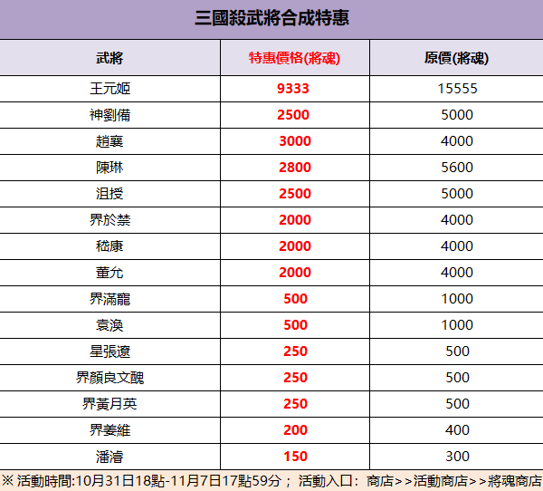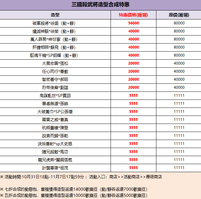 🌺武將&造型特價合成名單公佈