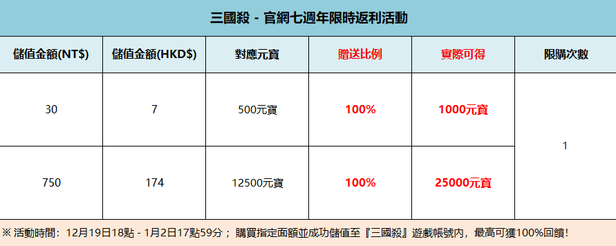 ⏰活動時間:12月19日18點 - 1月2日17點59分