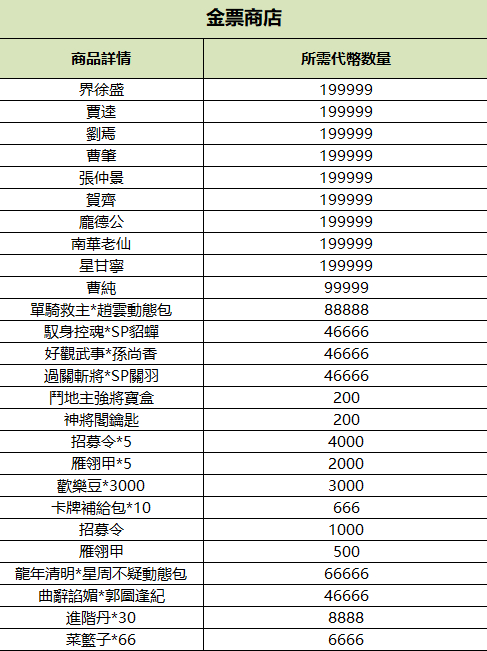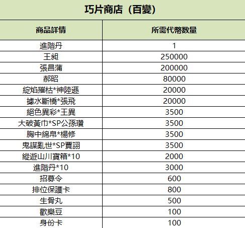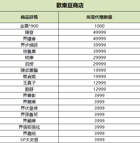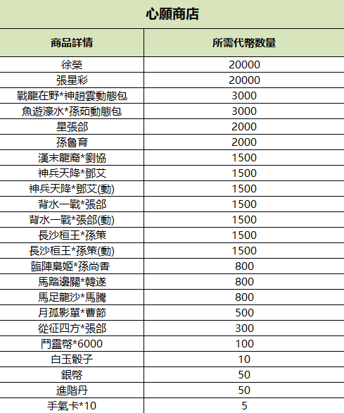 心願商店、巧片商店、金票商店、歡樂豆商店集體上新,詳情見配圖