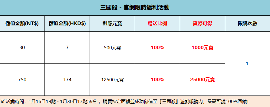 【#三國殺 儲值返利&直購禮包活動】