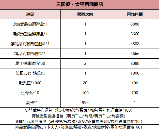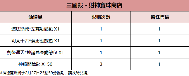 ※財神寶珠或太平百錢可在對應商店中兌換商品,商店兌換詳情見配圖。
