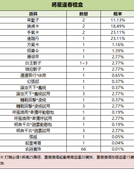 198/1950/3800/8888元寶可購買1個/10個/20個/50個將星逢春寶箱(起皇甫嵩、張媱、幻張郃),限購999次